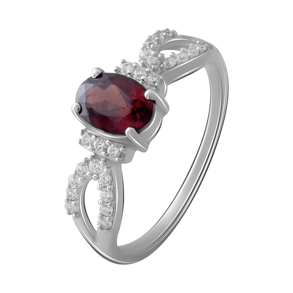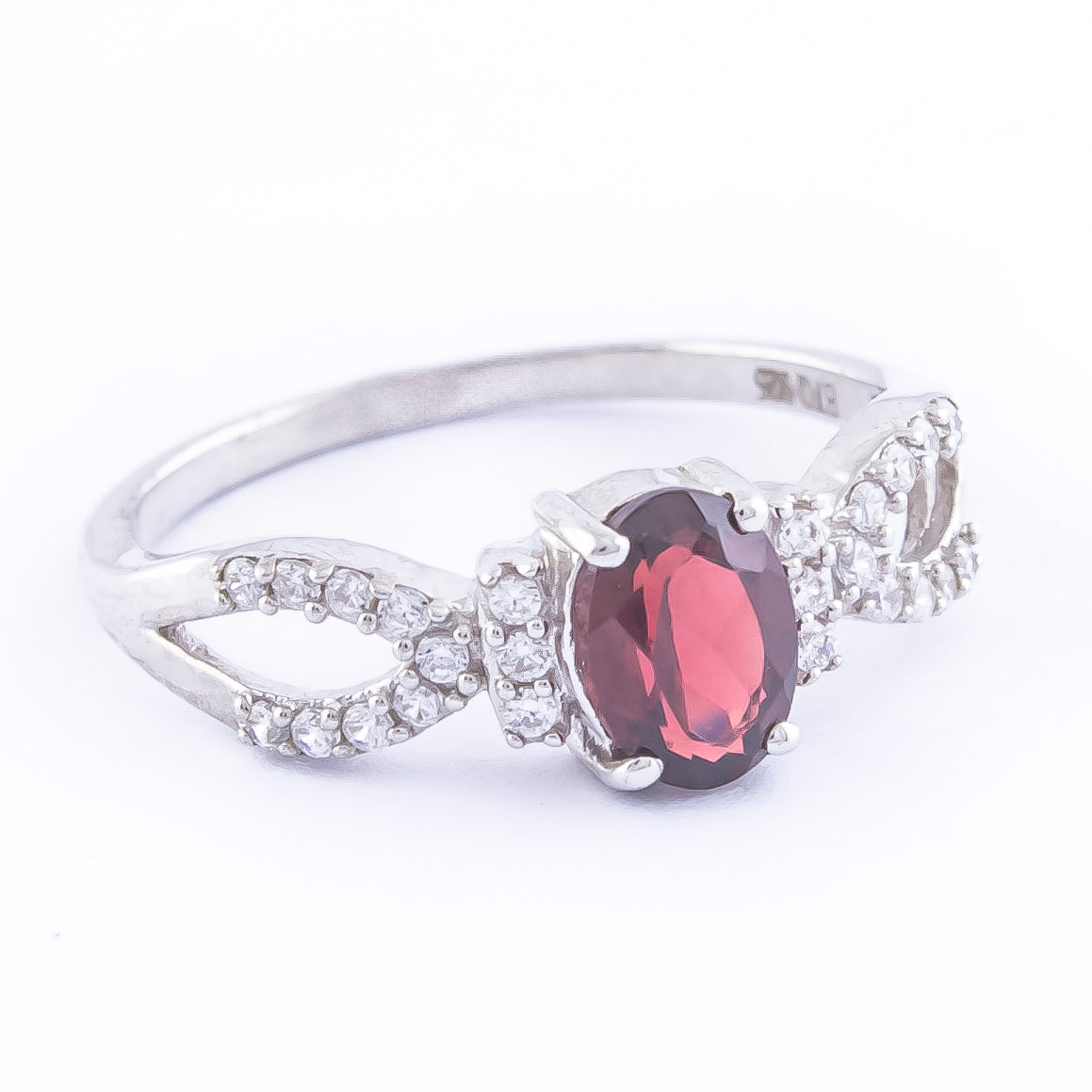 Срібна каблучка 925 проби 2,03 гр. з мозамбіцьким гранатом та білими топазами 1,21 карат