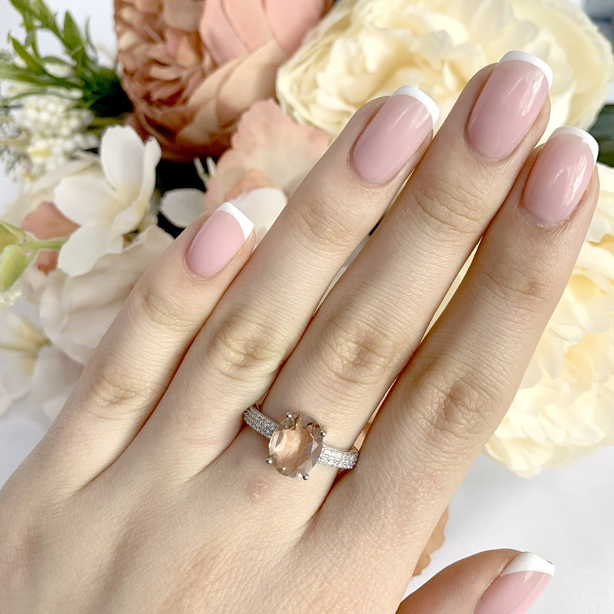 Серебряное кольцо с бразильскими морганитами класса AAAA