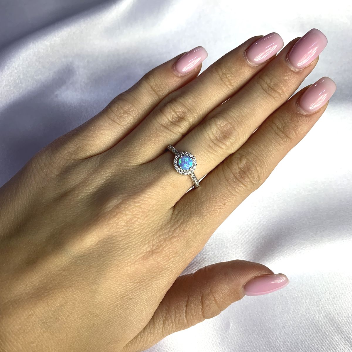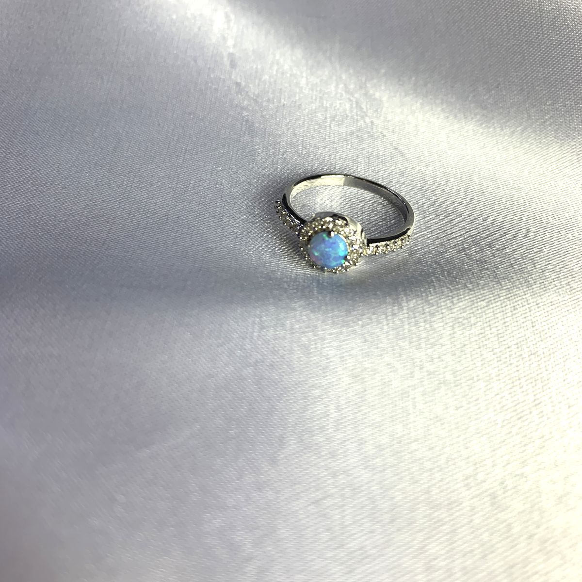 Серебряное кольцо 925 пробы с индонезийским синим опалом и куб циркония