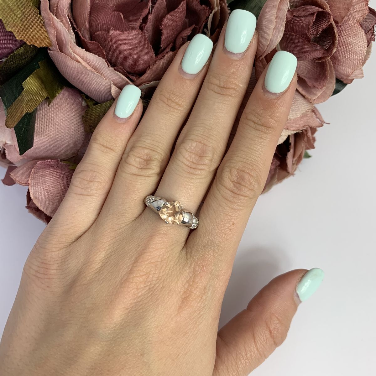 Серебряное кольцо с бразильскими морганитами класса AAAA