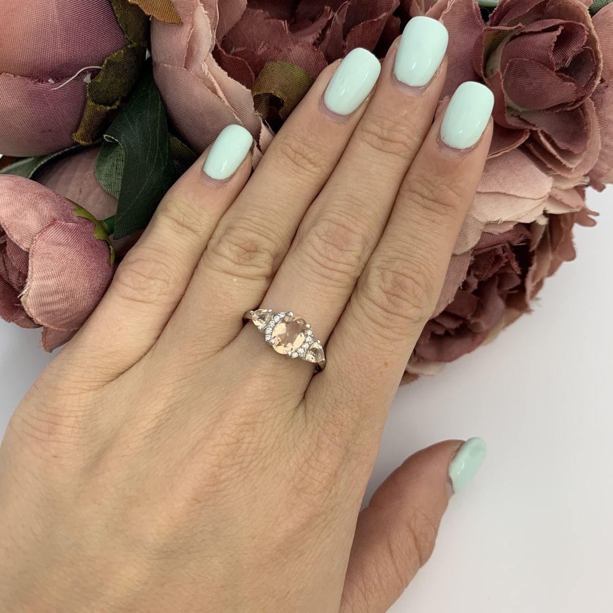 Серебряное кольцо 925 пробы 2,96 г с бразильским морганитом класса AAAA и куб циркония 1,03 карат