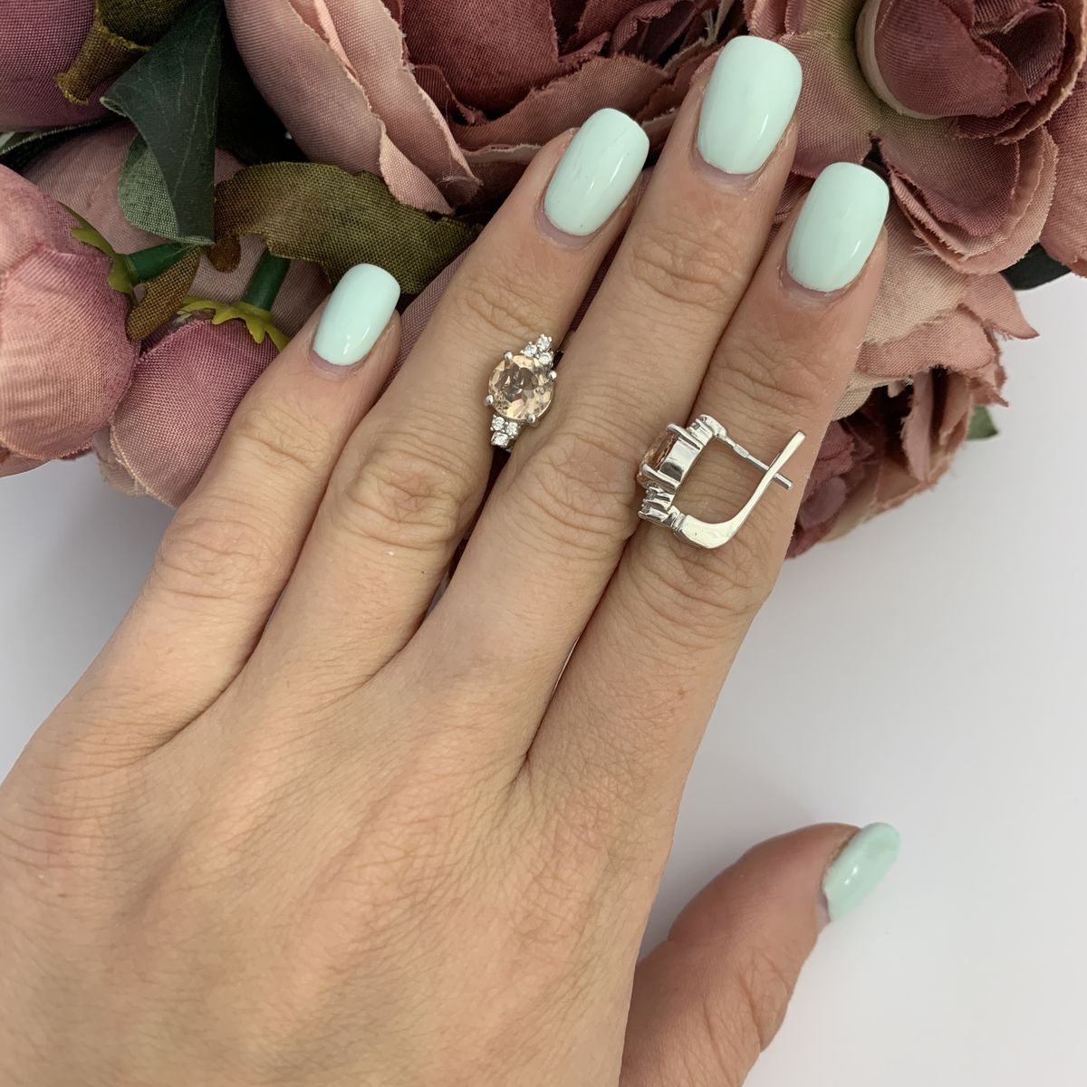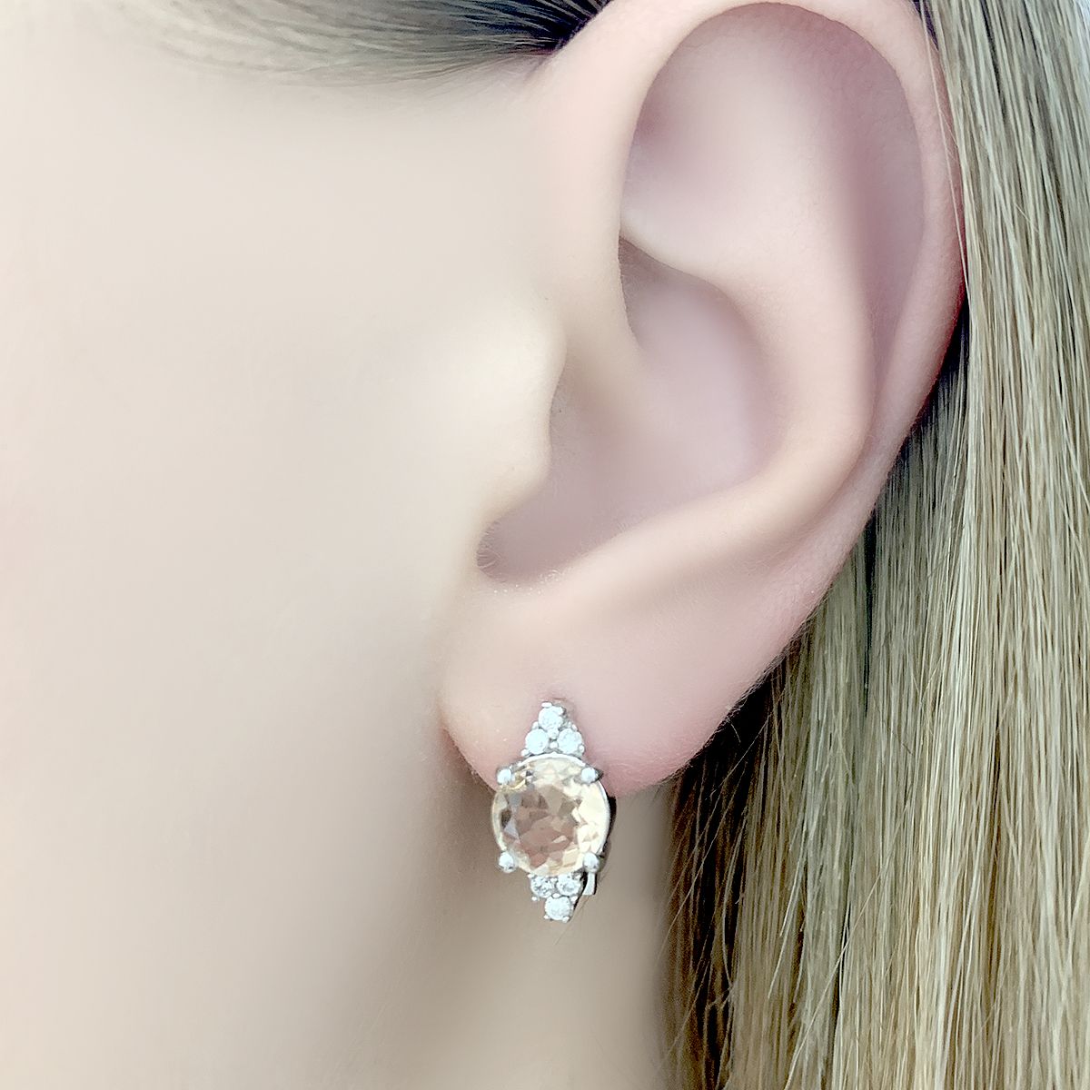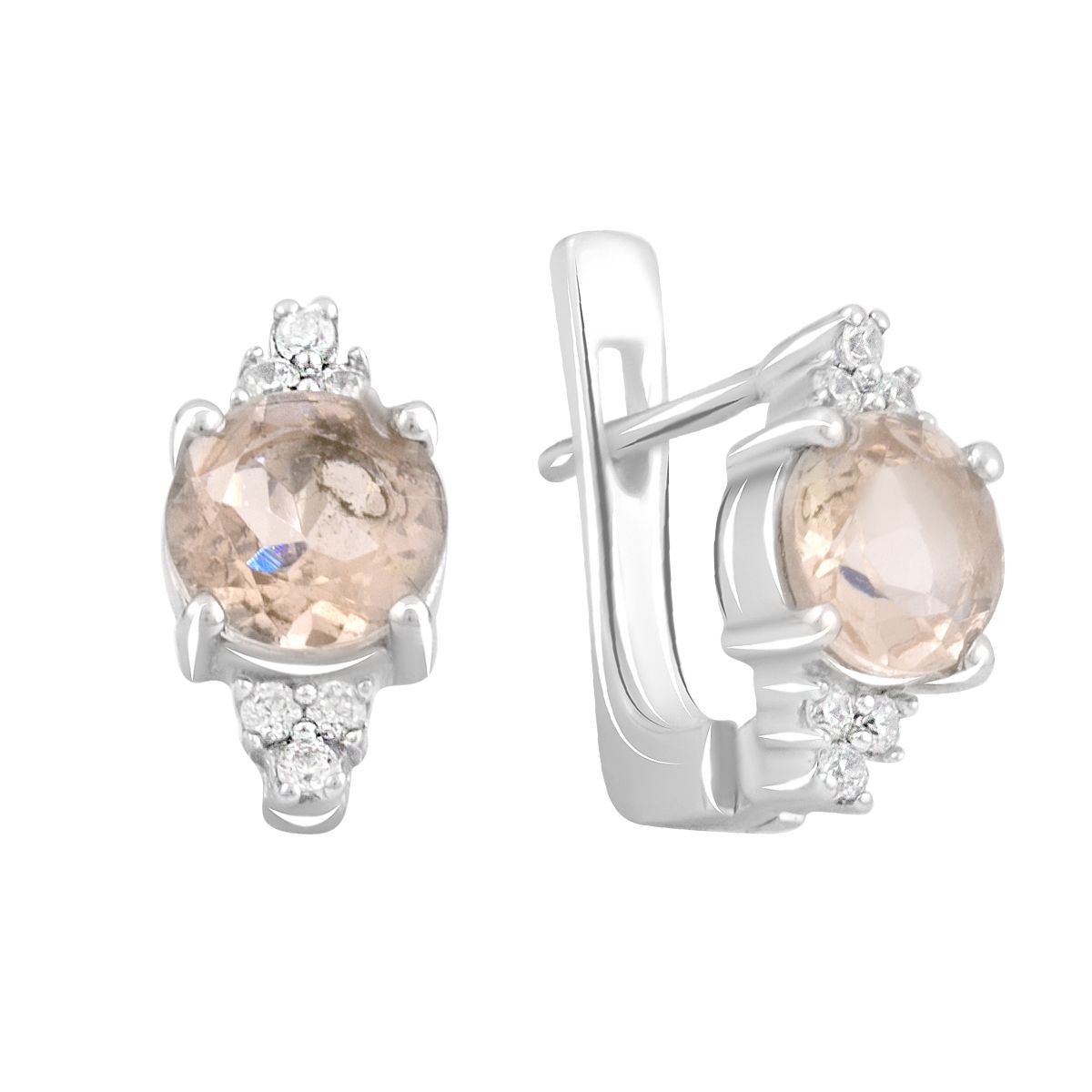 Серебряные серьги 925 пробы 4,47 г с бразильским морганитом класса AAAA и куб циркония 2,12 карат