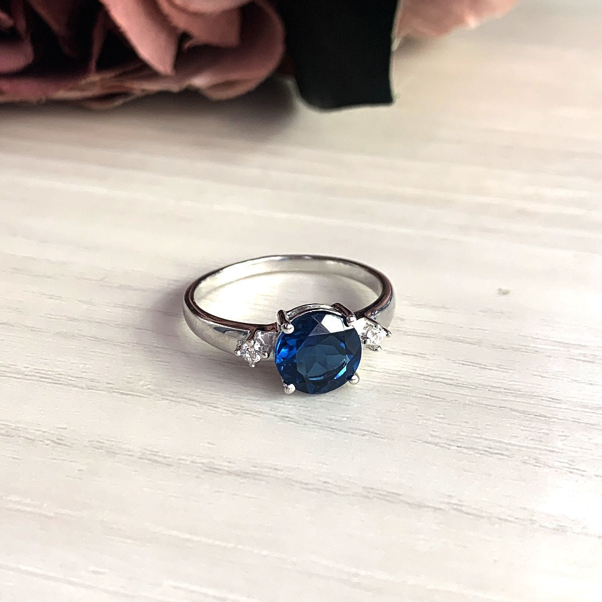 Серебряное кольцо 925 пробы 2,59 г с лондон блю топазом из США и куб циркония 1,54 карат