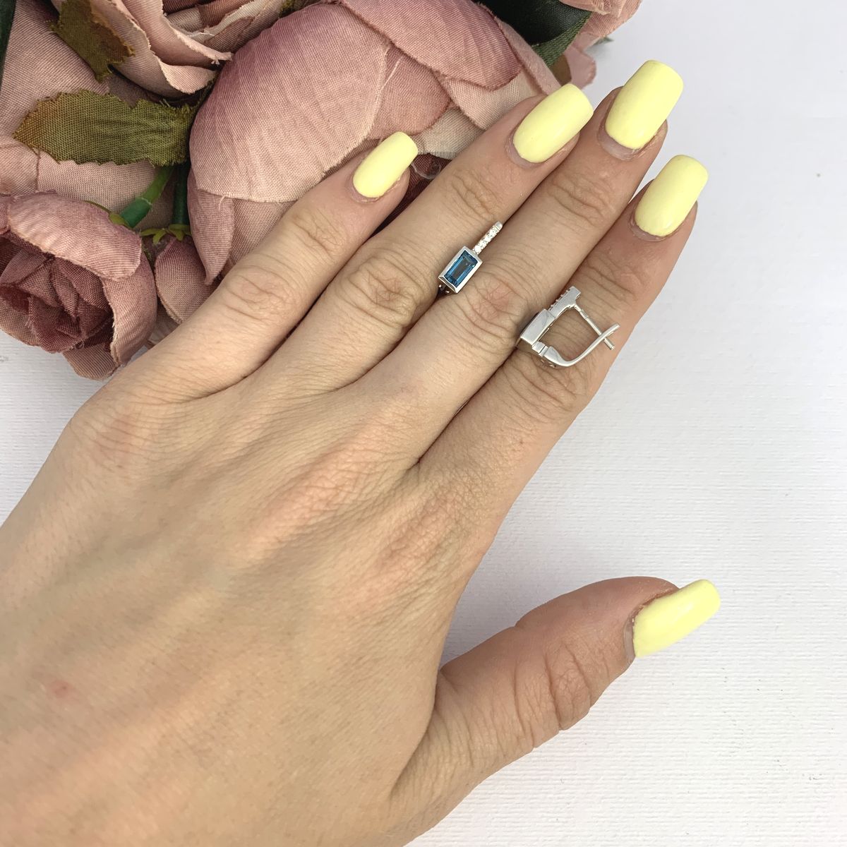 Серебряные серьги 925 пробы 2,51 г с лондон блю топазом из США и куб циркония 0,64 карат