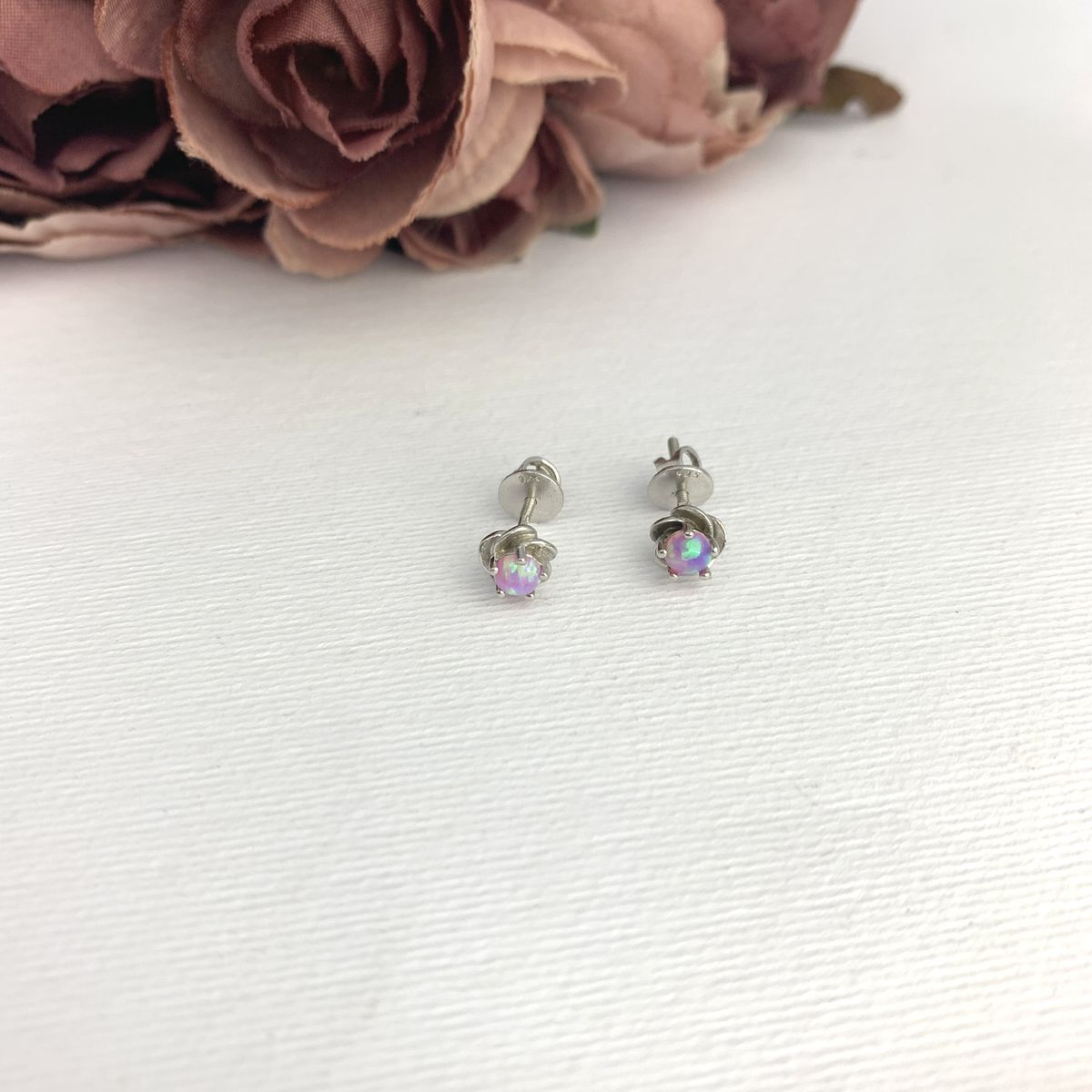 Серебряные серьги 925 пробы 1,86 г с мадагаскарским розовым опалом класса AAA 1,7 карат