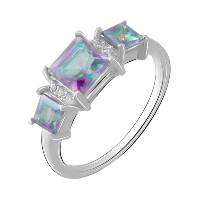 Срібна каблучка з містичним топазом та цирконами