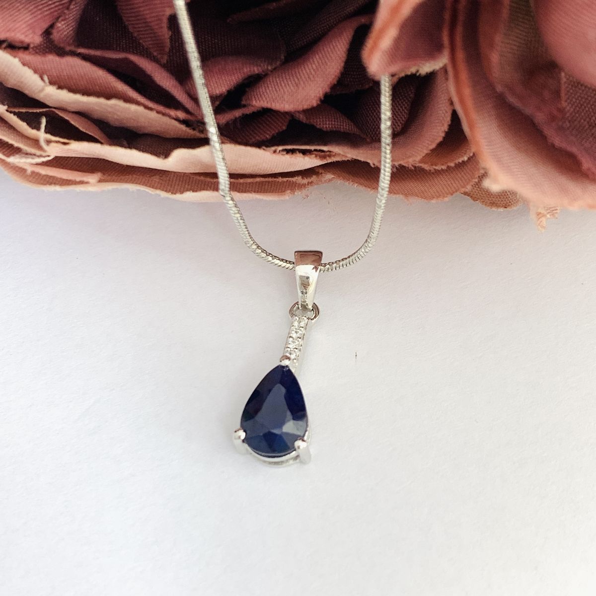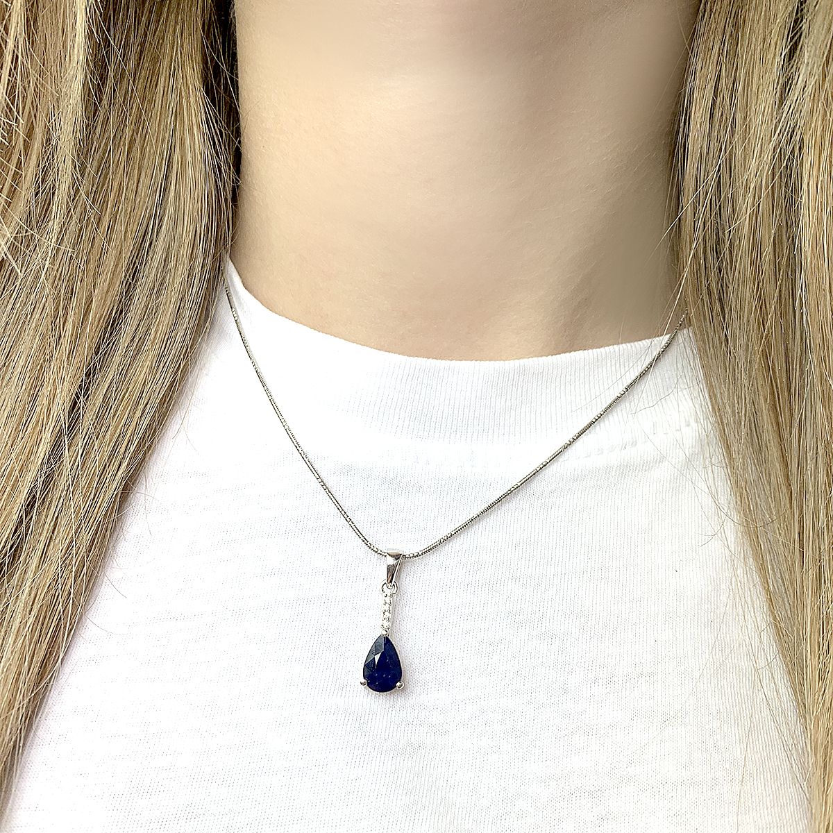 Серебряная подвеска 925 пробы 1,61 г с сапфиром Канчанабури класса AAАA и куб циркония 1,13 карат